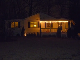 First of all that little bit of lights on the left hand side is a pretty bird house that came with lights on it. We have already moved that to the porch so you can see it better. Besides that, sports guy and I both agree we need something else, but we aren't sure what that something else is. Maybe some light up reindeer in the yard playing reindeer games? I tried convincing him to get on the roof and line it in lights, but that ain't happening. I mean I love the icicle lights on the porch, but I feel like we need something else. Any ideas?